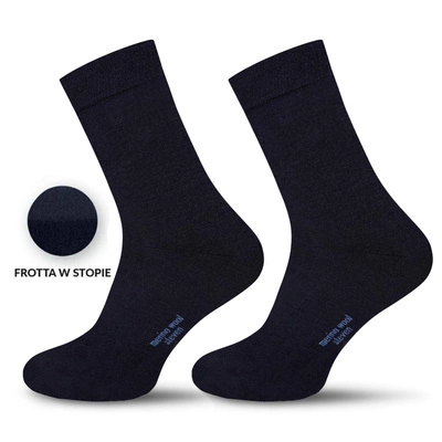 Granatowy art. 130 BW002 bez wzoru, męskie skarpety z wełny Merino, komfortowe i delikatne Skarpety półfrotte z wełny merino art. 130