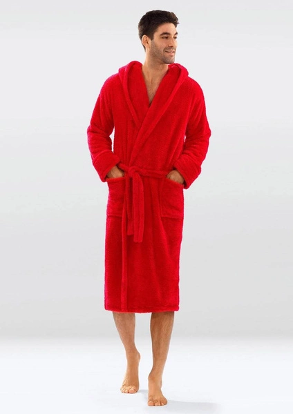 Szlafrok Męski Czerwony 130 Luksusowy Z Kapturem Podomka 130 Męska Z Kapturem